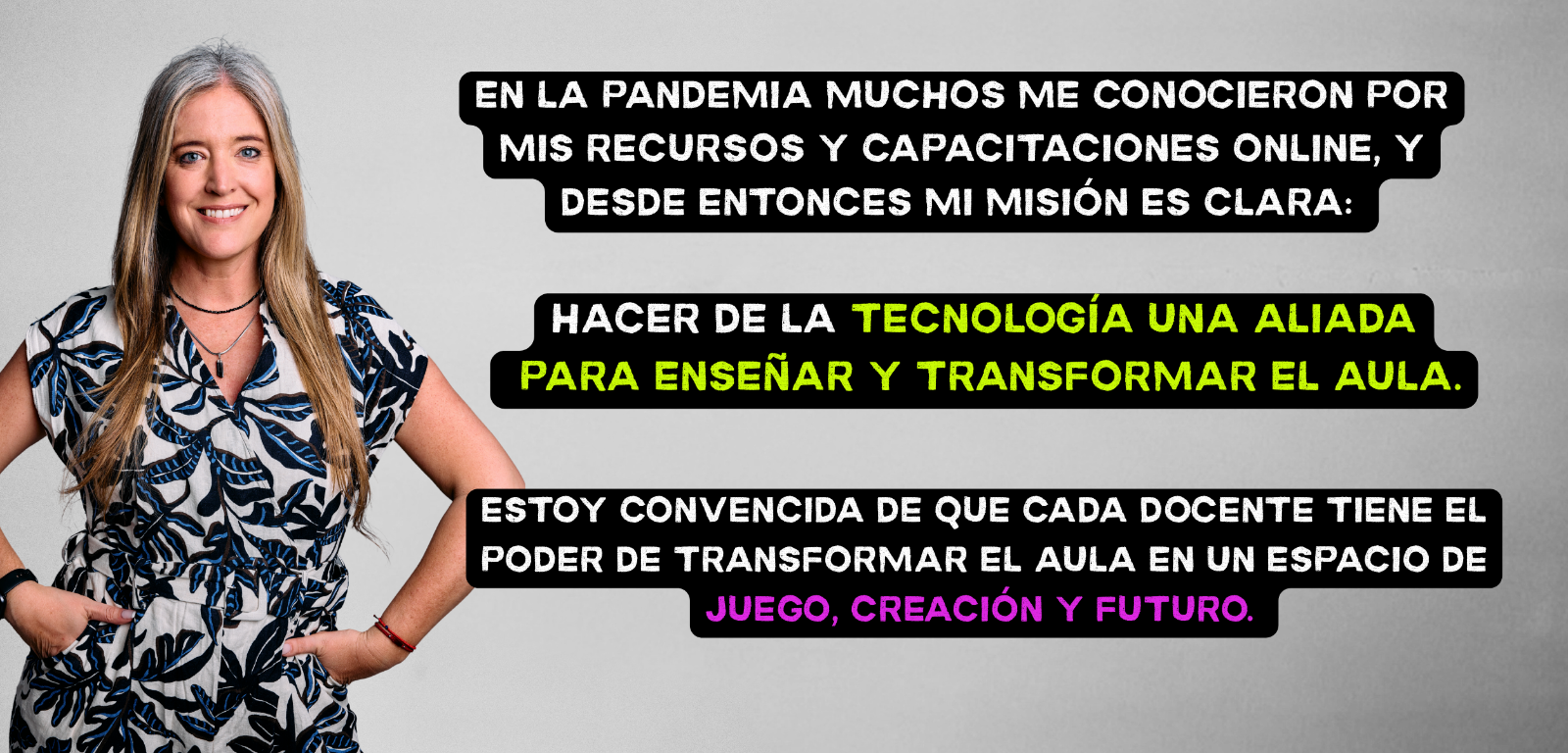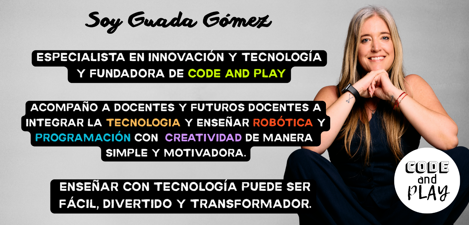 Guada es profesora de Nivel Inicial, capacitadora docente y referente en Tecnología Educativa, Metodología STEAM e Innovación, con amplia experiencia en roles de gestión y coordinación pedagógica en Nivel Inicial, Primaria y Secundaria. Especializada en competencias digitales, robótica y programación, se dedica a la formación docente en el uso pedagógico de herramientas digitales. Cuenta con estudios en Gestión Educativa, Inclusión, Innovación y Pensamiento Computacional en instituciones como el MIT, UTN, UCES y la Universidad de San Andrés. Es Google Trainer y Canvassador de Canva, representando a Argentina.